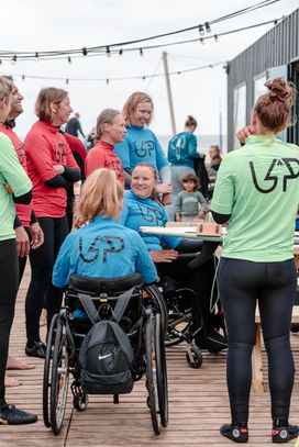 Adaptive surf session in The Hague, documenting the first lesson of the season and the use of a custom-designed surfboard.